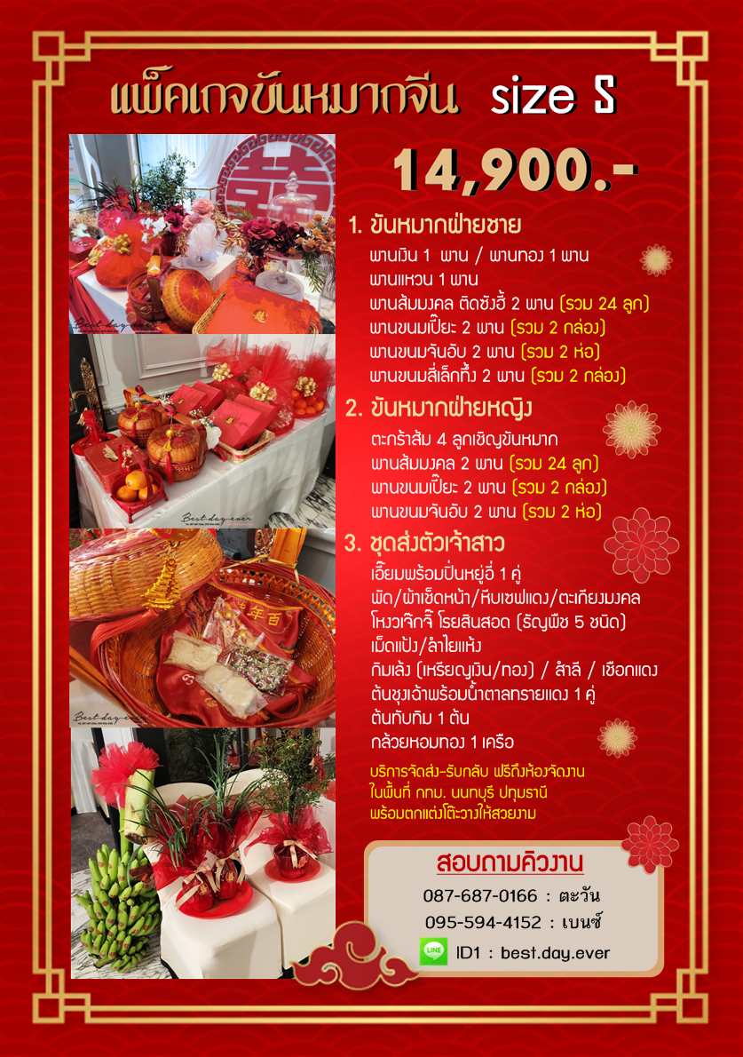 บริการขันหมากจีน สามารถปรับรายการตามประเพณีของท่านได้ ทักแชทสอบถามได้เลยครับ