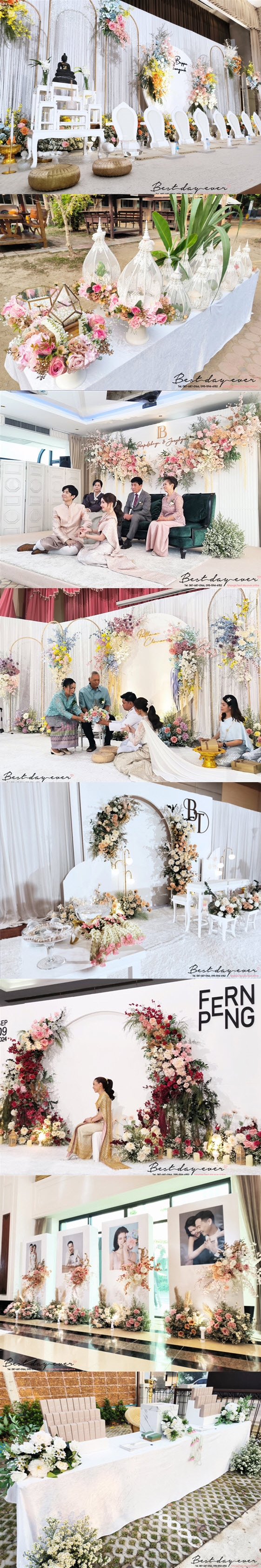 - ผ้าและดอกไม้ตกแต่งโต๊ะลงทะเบียนตามธีมงาน
